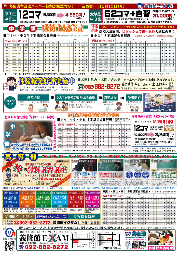 義修館・義修館イグザムは福岡市西区を拠点に小学生・中学生・高校生に学習指導、受験指導をする学習塾・予備校です。