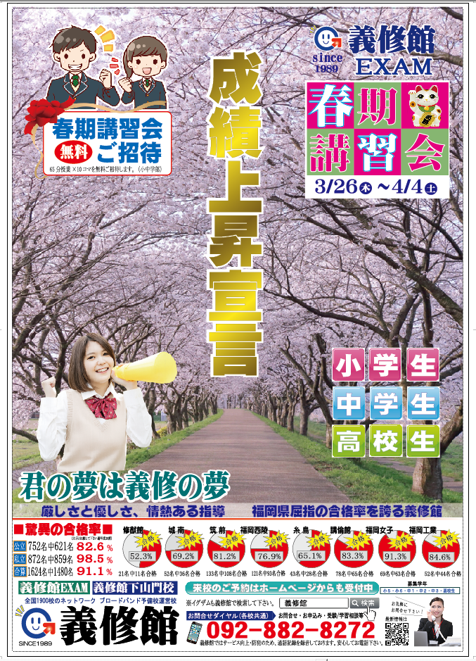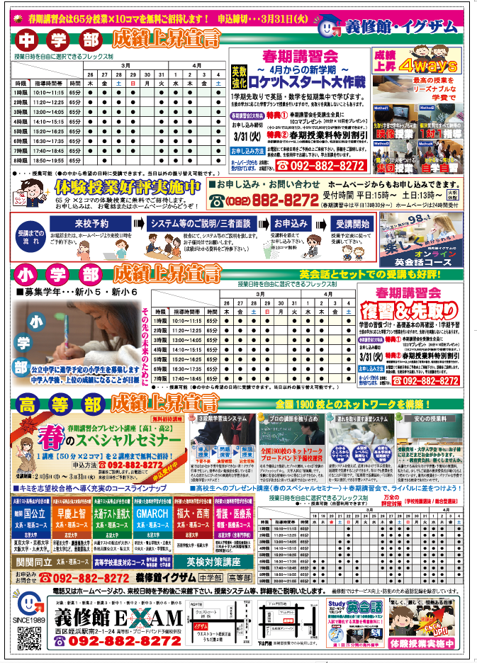 義修館・義修館イグザムは福岡市西区を拠点に小学生・中学生・高校生に学習指導、受験指導をする学習塾・予備校です。
